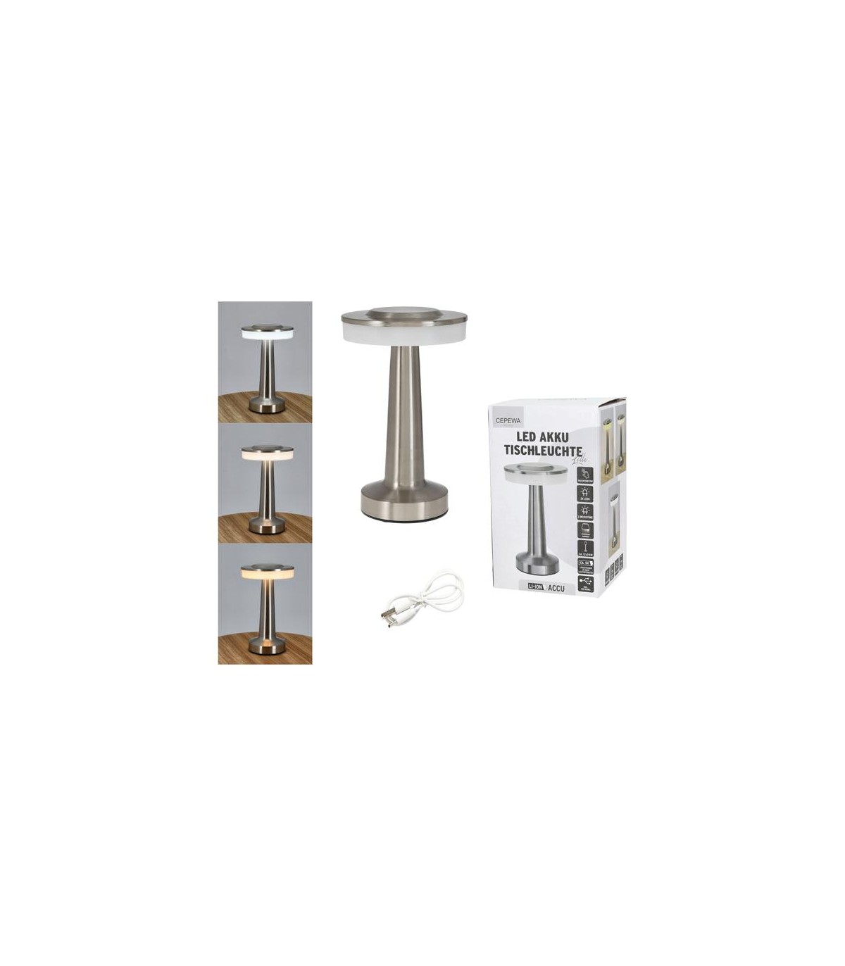 USB-laetav LED-valgusti annab meeldiva valguse ja ei vaja pidevat vooluvõrku – sobib ideaalselt lauale, öökappi või tööpinnale. Tänu kompaktsele kõrgusele umbes 21 cm on lamp piisavalt valgustav, kuid võtab vähe ruumi.